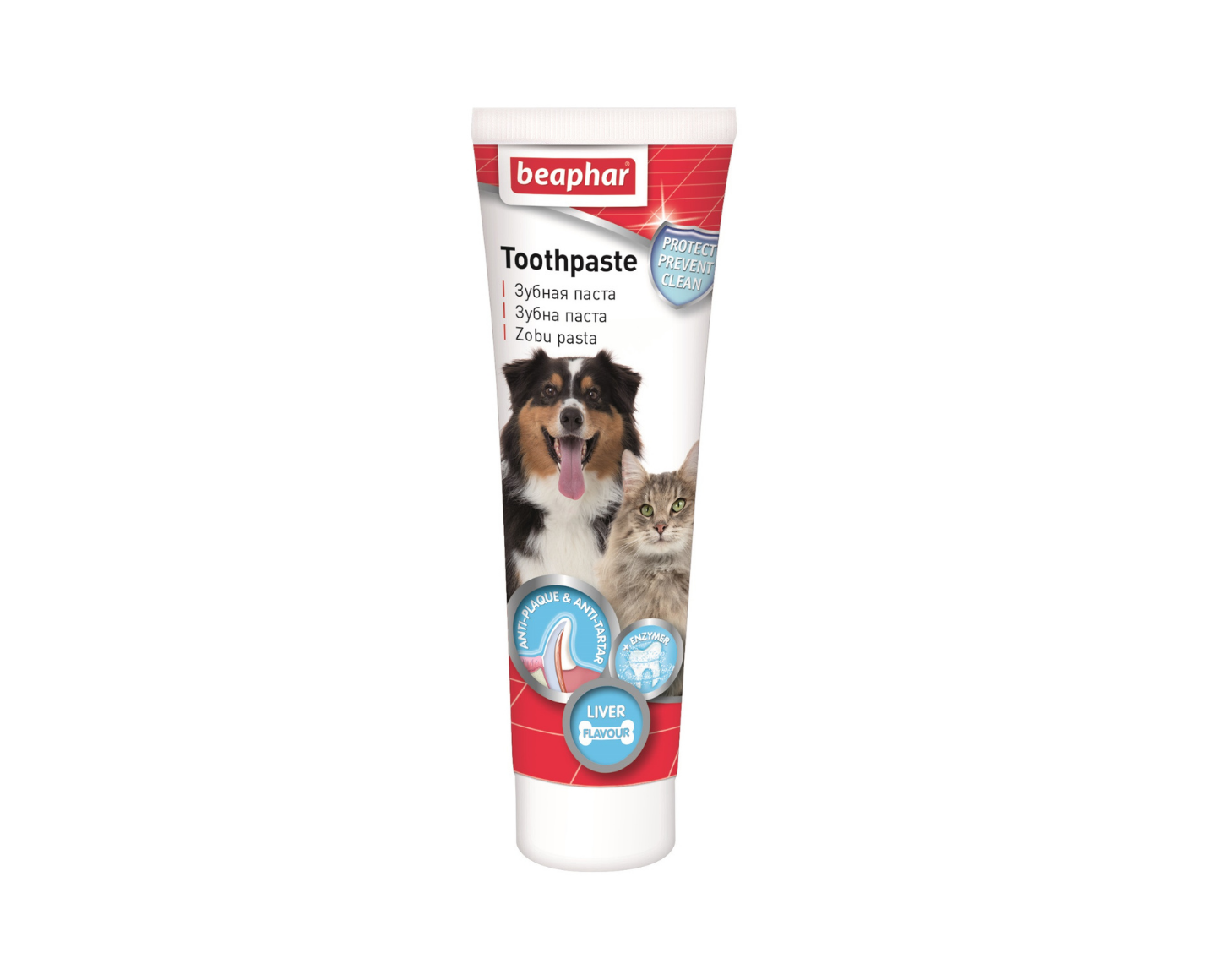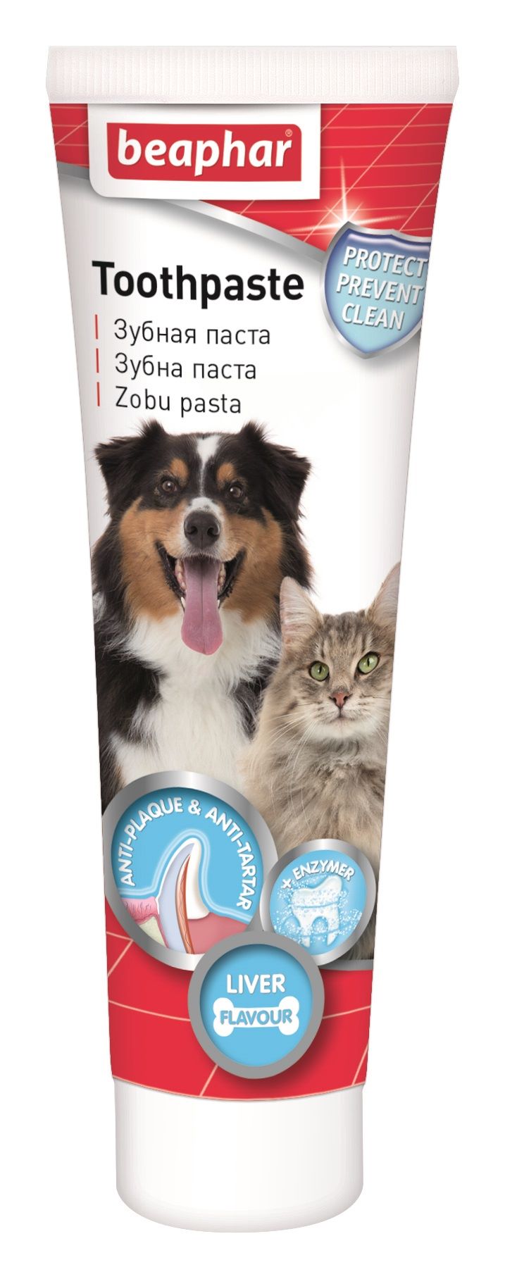 Зубна паста для щоденного надійного захисту зубів собаки або кота. Видаляє наліт з зубів та запобігає утворенню зубного каменю, забезпечуючи свіжий подиху з пащі. Паста має смак печінки, що робить ї ї приємною на смак. Паста виконує одразу дві важливі захисні функції: знищує шкідливі бактерії, які сприяють утворенню нальоту на зубах; запобігає утворенню зубного каменю.